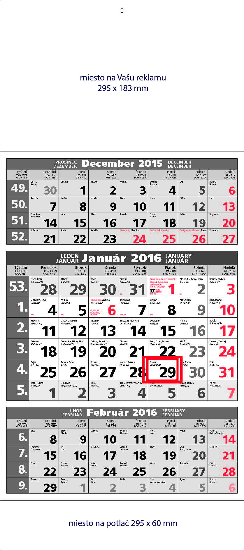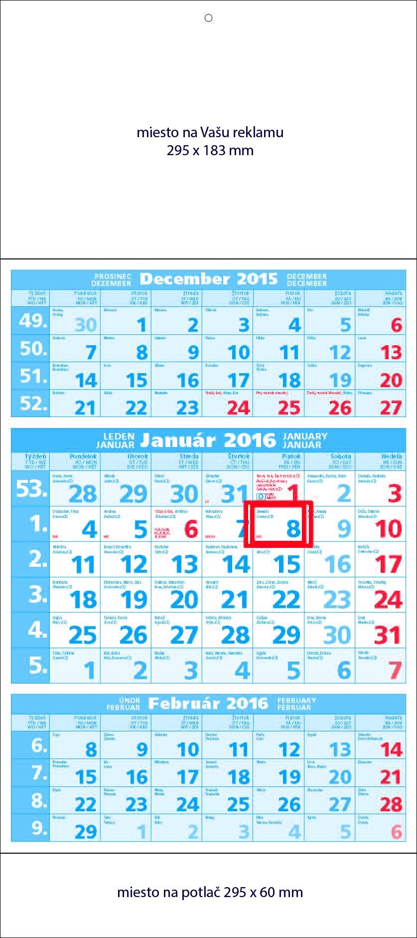 Plánovací trojdielny kalendár 2016